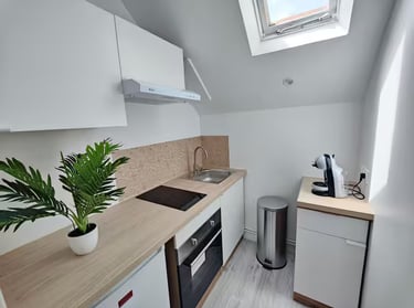 Notre studio allie parfaitement le charme bohème à une ambiance naturelle,créant un espace accueillant et reposant.Profitez de tous les avantages d'un logement entièrement équipé.